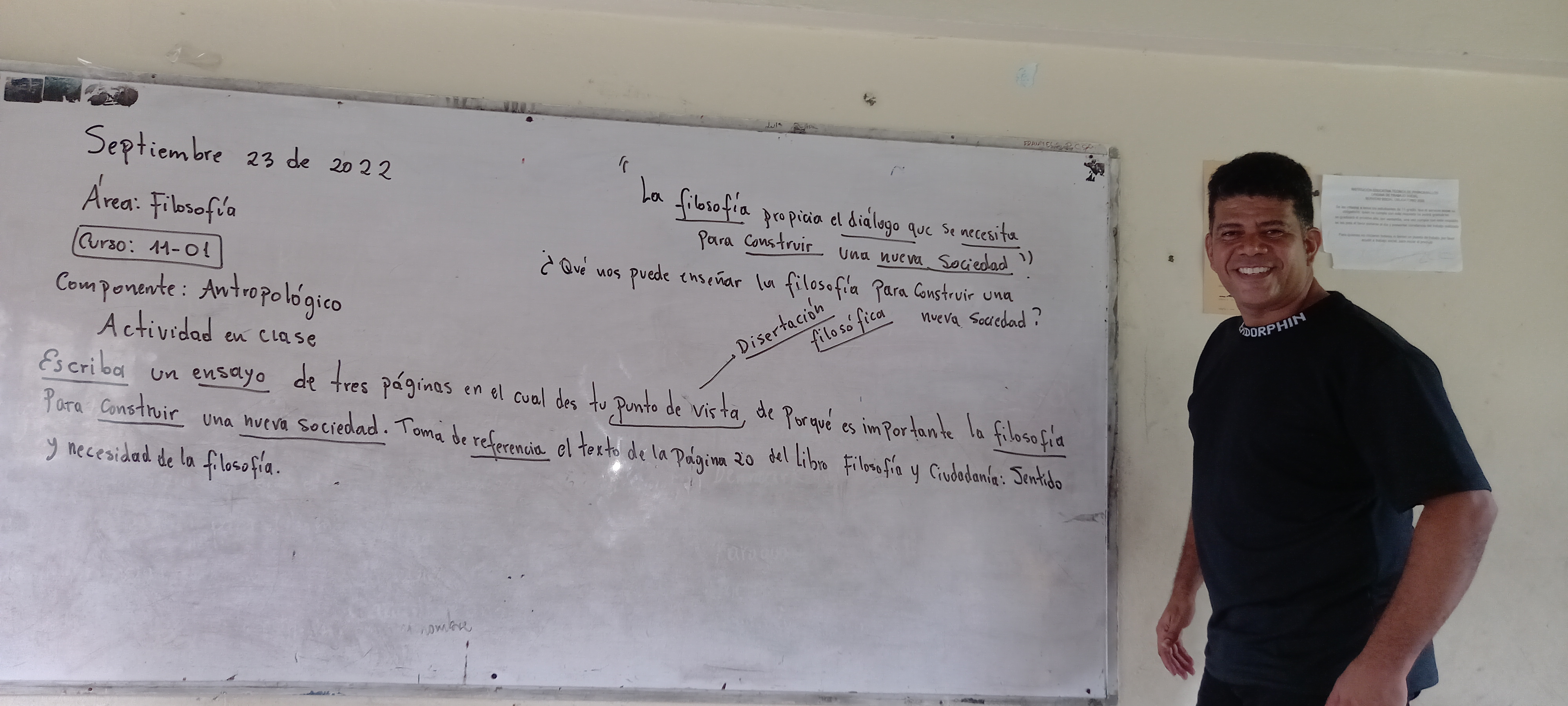 Sesión de Filosofía en el curso 11-02 de la Institución Educativa Técnica de Pasacaballos